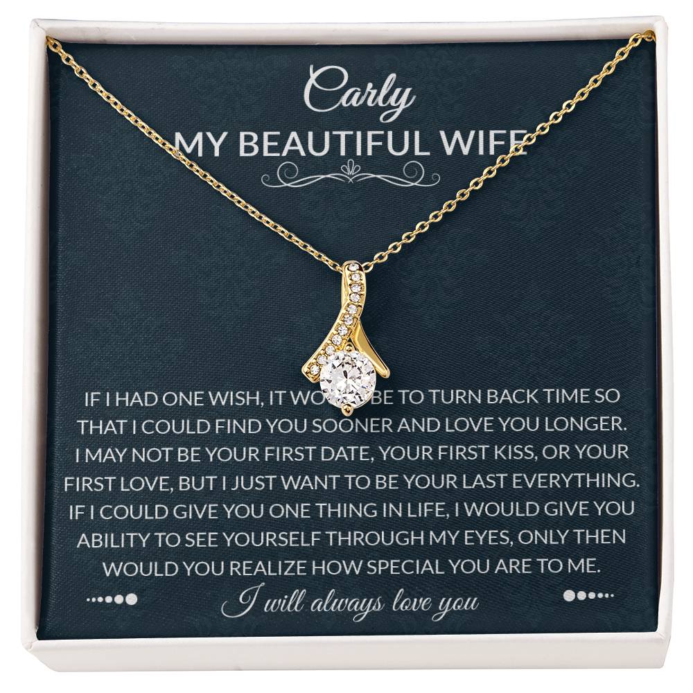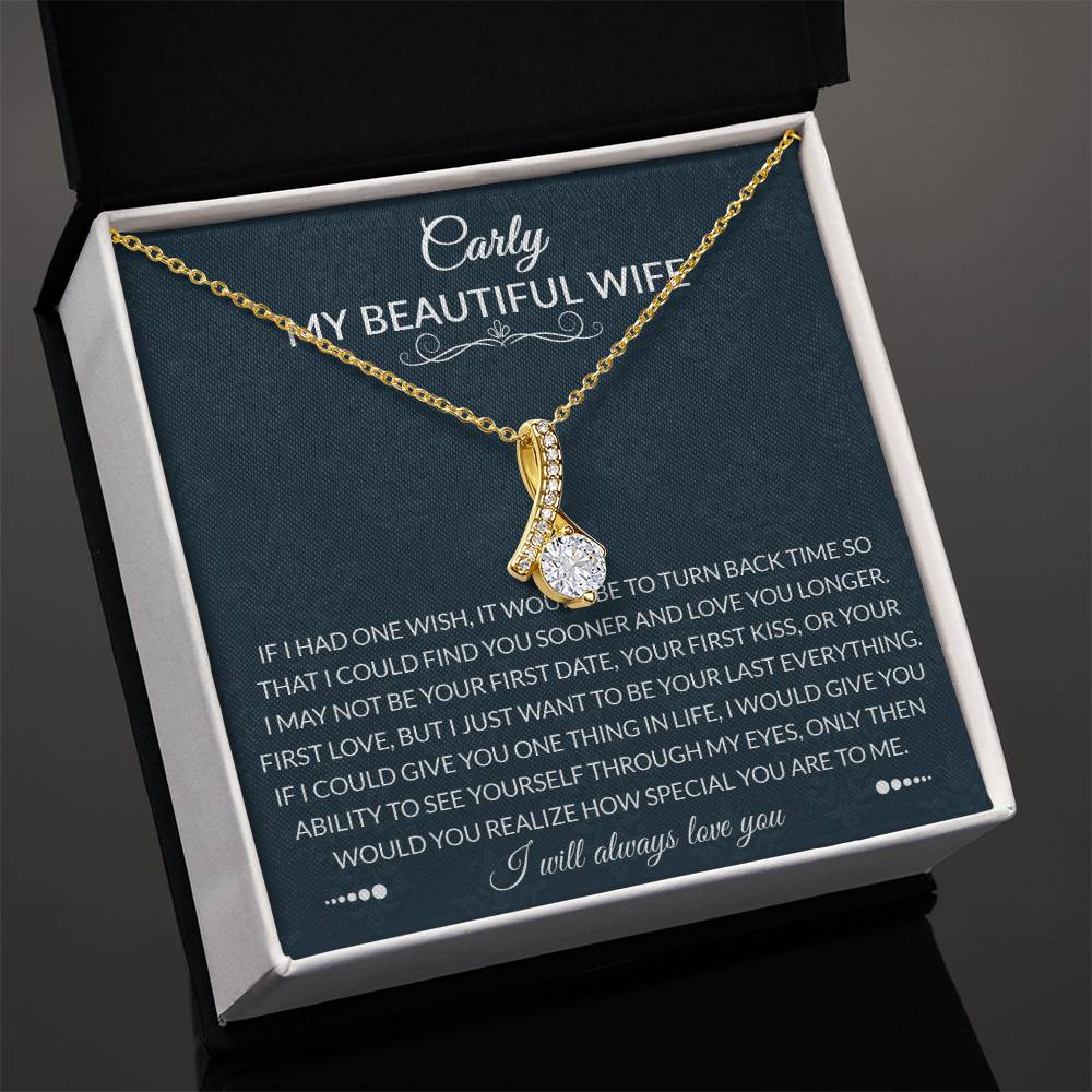 Imagine her reaction when she opens this stunning gift! The Alluring Beauty necklace features a petite ribbon shaped pendant that is sure to dazzle your special someone. Whether it's a birthday or anniversary, make sure to get her a gift she will love for years to come.